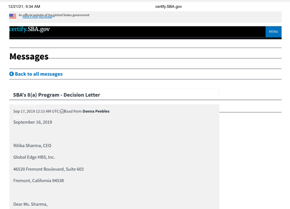 SBA’s 8(a) Program – Decision Letter